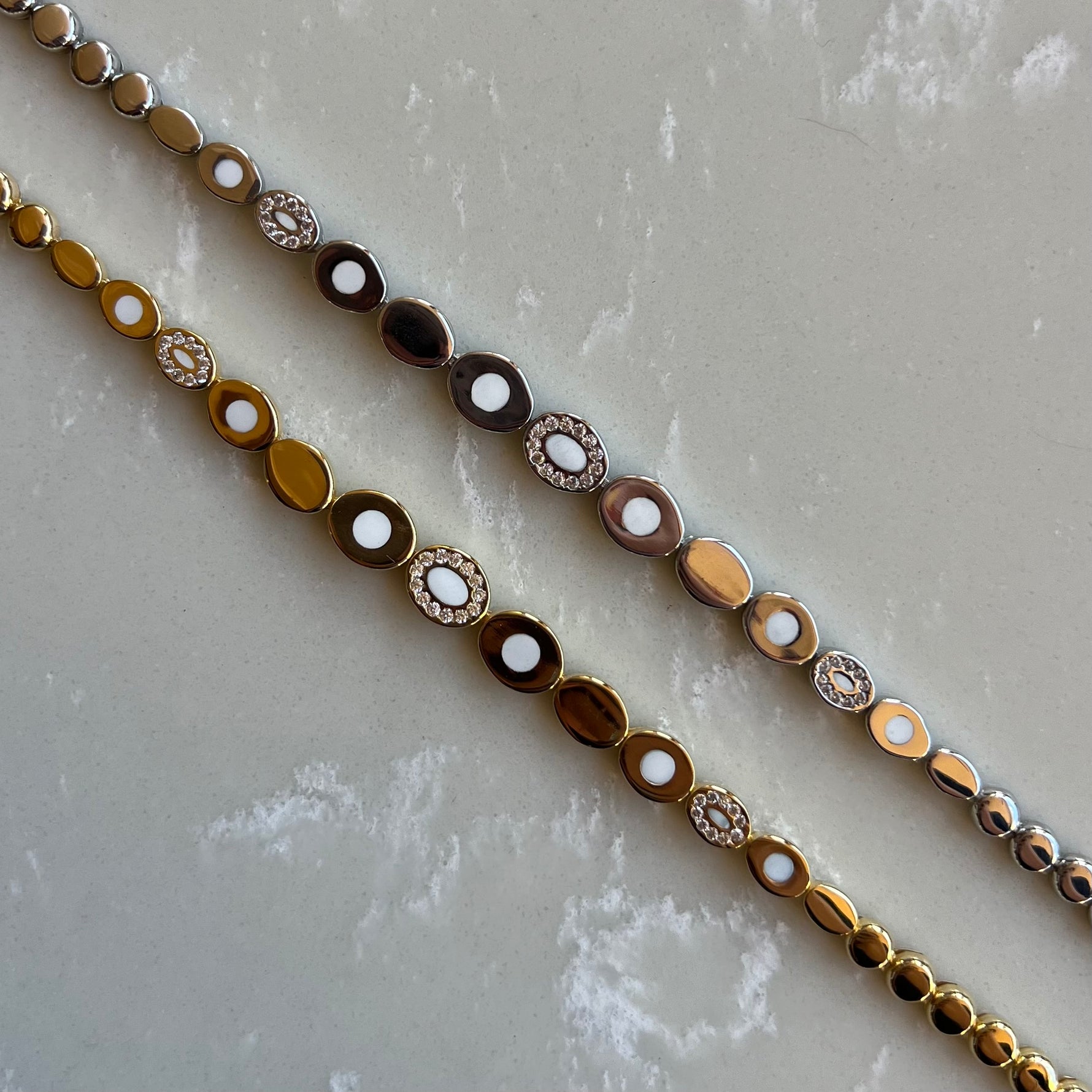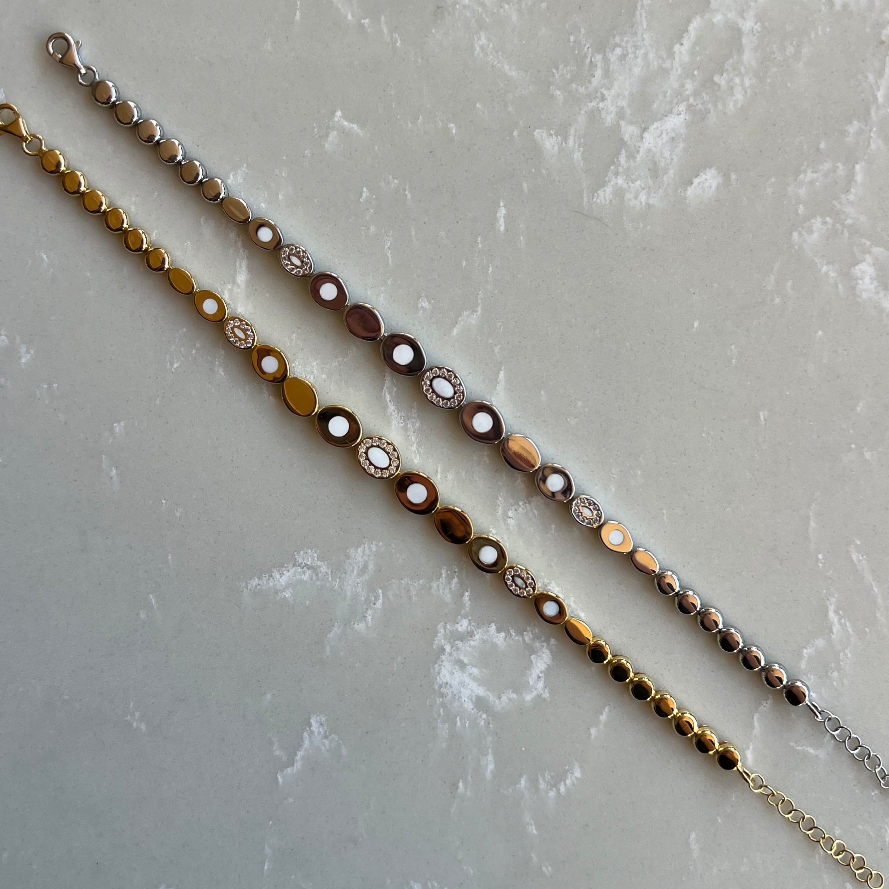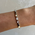 Gorgeous handmade 925 sterling silver chain bracelet with enamel and cubic zirconia.