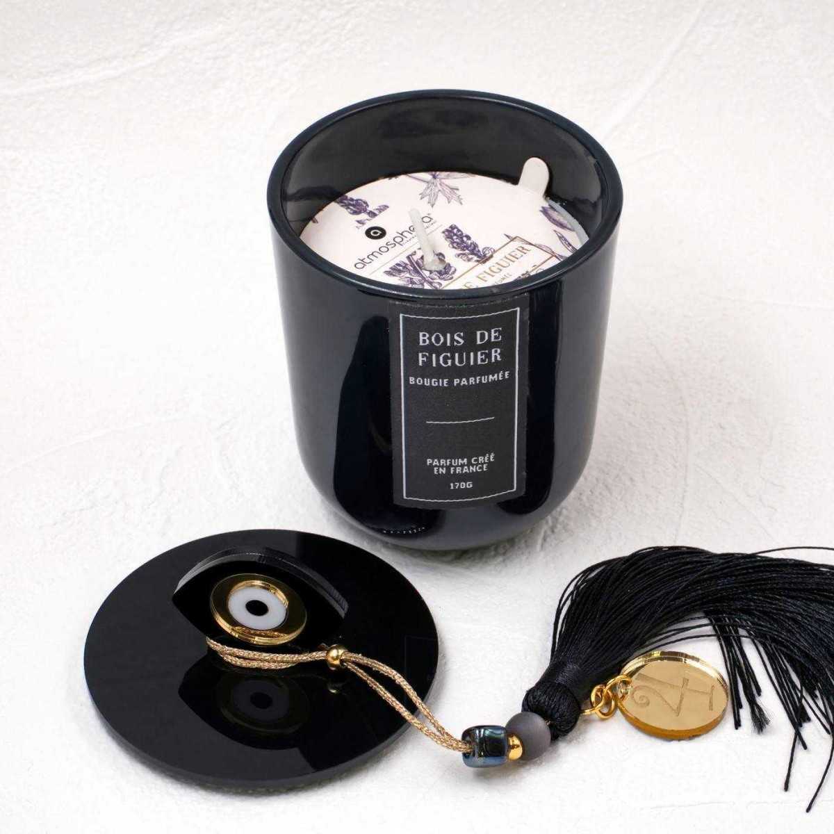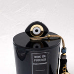 Indulge in good luck with our Bois De Figuier Candle. Handmade with paraffin wax and a plexiglass cover featuring an evil eye, this luxurious candle also includes 24K gold-plated metallic parts, a 12cm silk tassel, and ceramic beads. Made in Greece, this scent will bring a touch of charm and elegance to any room.
