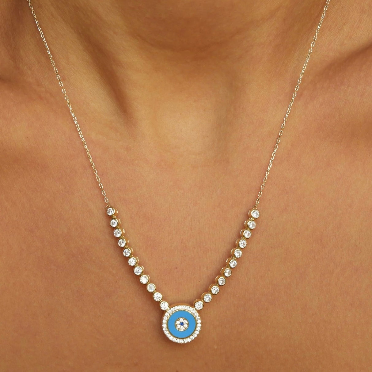 Gorgeous 925 Sterling Silver gold plated Evil Eye necklace with cubic zirconia & enamel.