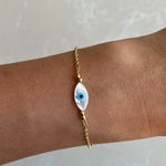 Gorgeous 925 sterling silver gold plated pearl evil eye bracelet.
