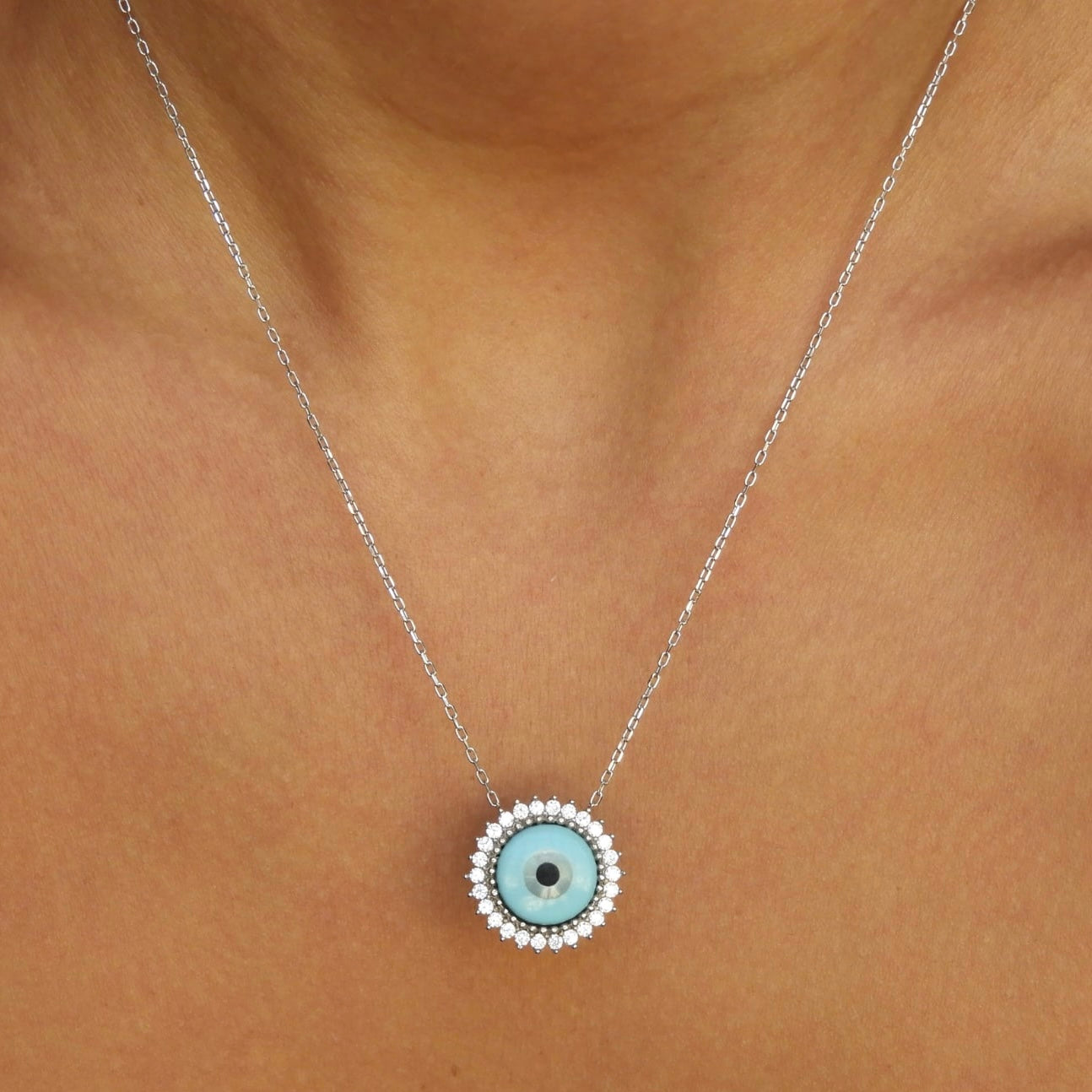 Gorgeous 925 Sterling Silver Evil Eye necklace with cubic zirconia.