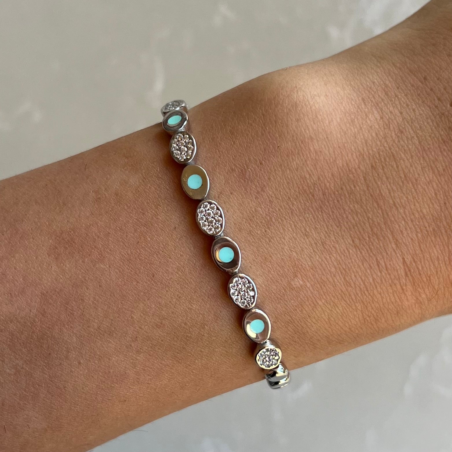 Gorgeous handmade 925 sterling silver chain bracelet with enamel and cubic zirconia.