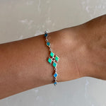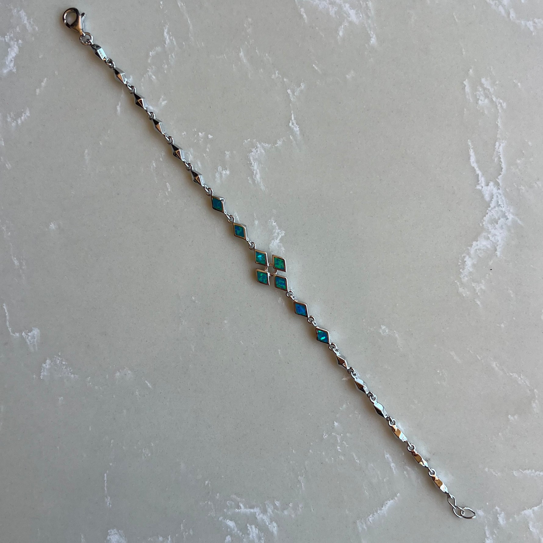 Handmade 925 Sterling Silver Opal Cross Chain Bracelet.