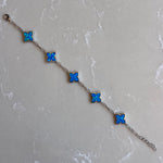 Handmade 925 Sterling Silver Opal Flower Chain Bracelet.
