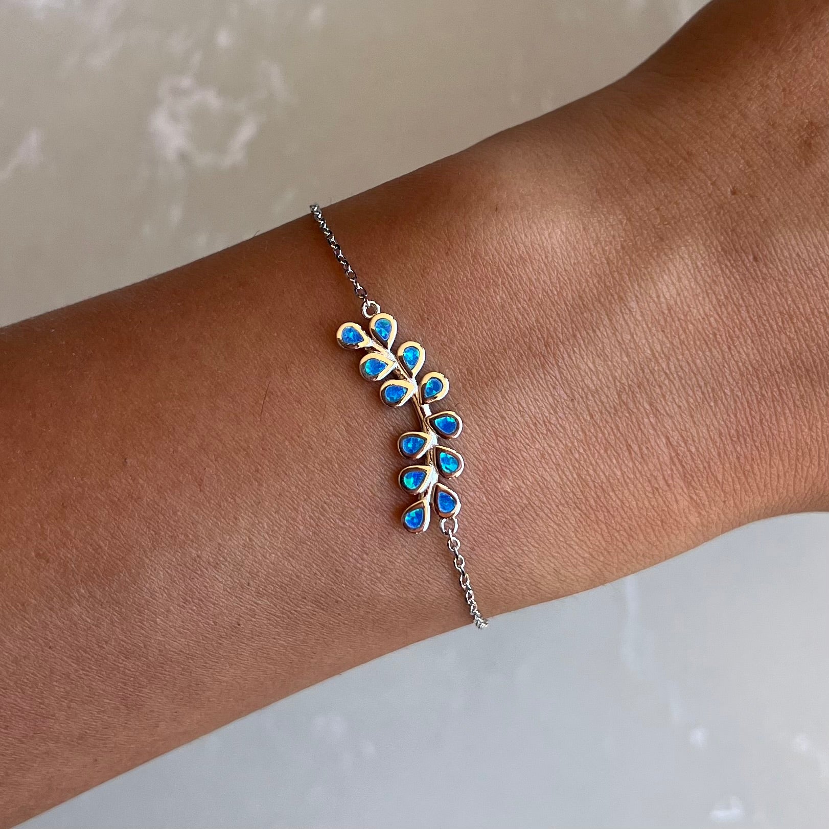 Opal Leaf Silver Chain Bracelet