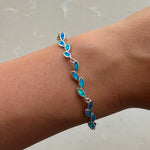 Handmade 925 Sterling Silver Opal olive leaf Chain Bracelet.
