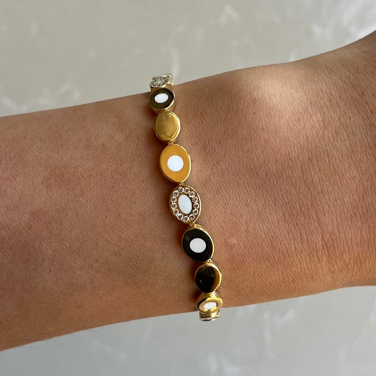 Gorgeous handmade 925 sterling silver gold plated chain bracelet with enamel and cubic zirconia.