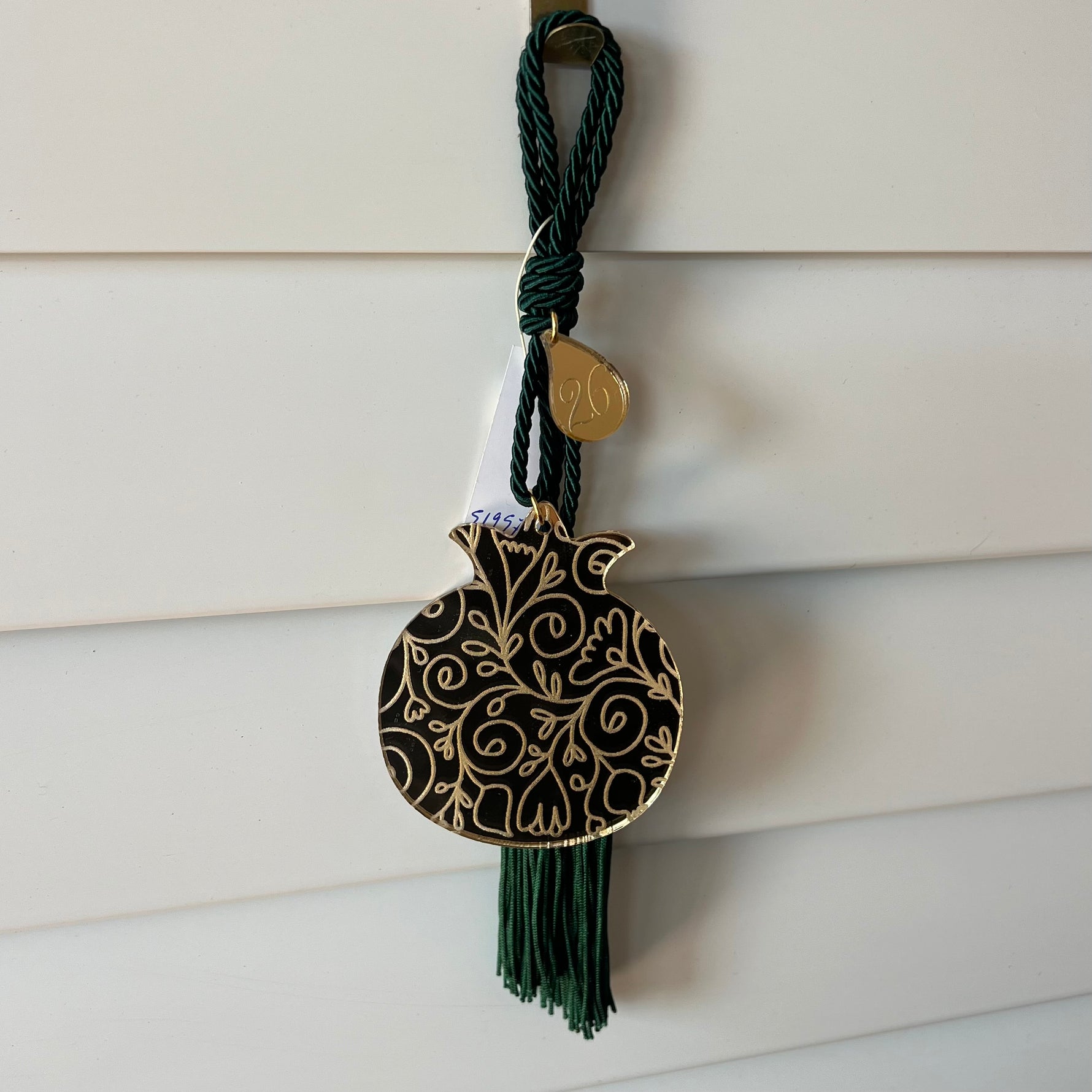 Handcrafted in Greece from premium plexiglass, this elegant lucky charm pomegranate, bringing positive energy into your home. Finished with a luxurious handmade silk tassel and braided cord, the 30 cm design adds a refined touch to any space.