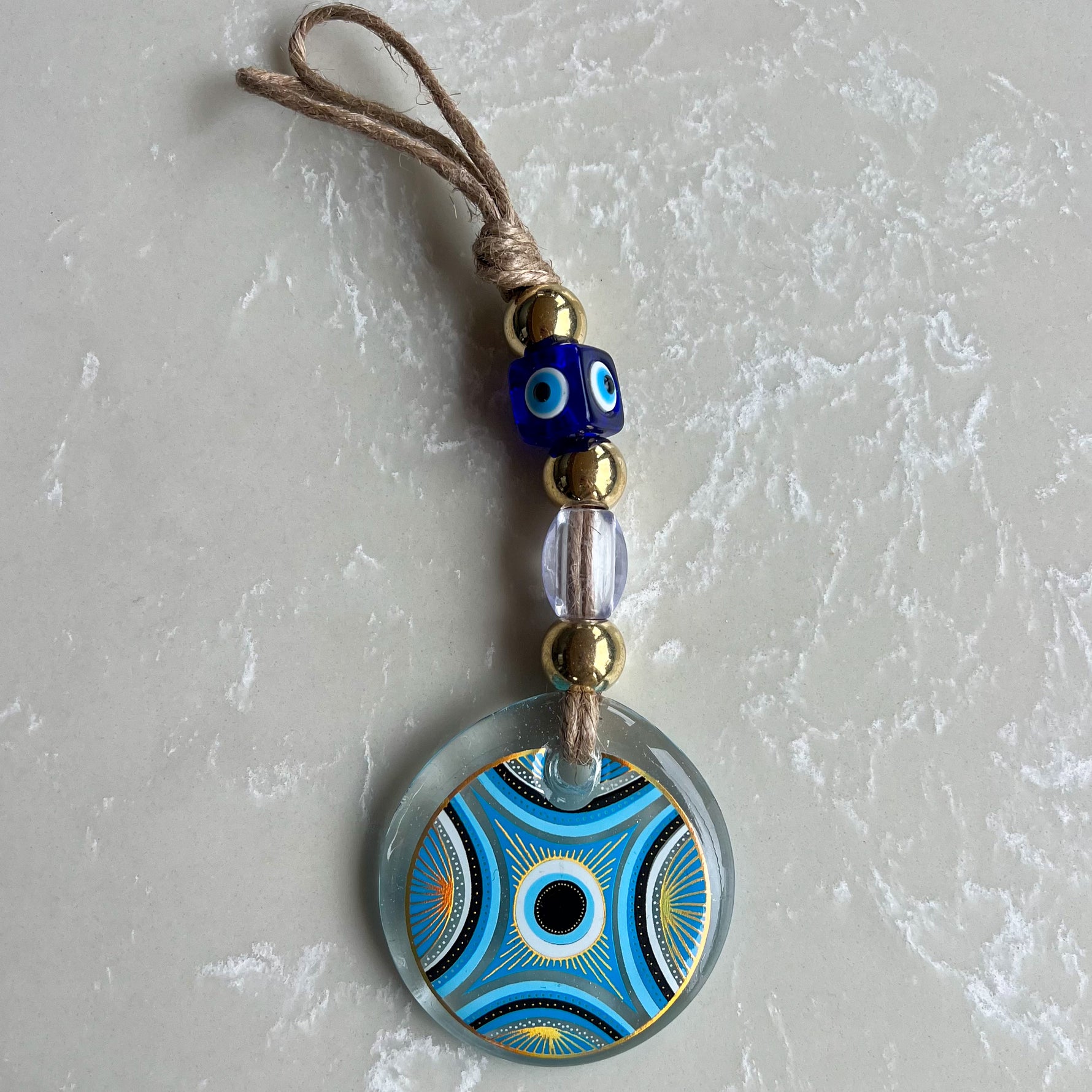 Gorgeous handmade glass wall ornament with special evil eye design.