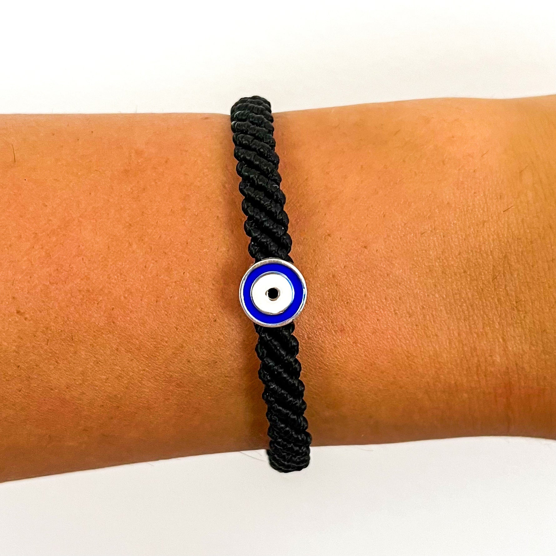 Handmade Unisex Wax Threaded Knot bracelets With 925 Sterling Silver Evil Eye Pendant.