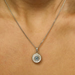 Gorgeous 925 sterling silver evil eye necklace with Greek key design.
