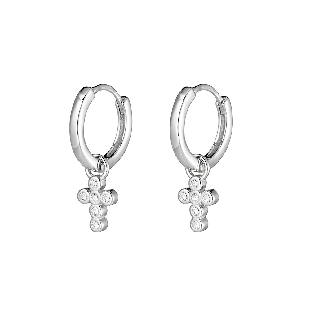 Hellen Silver Cross Hoop Earrings