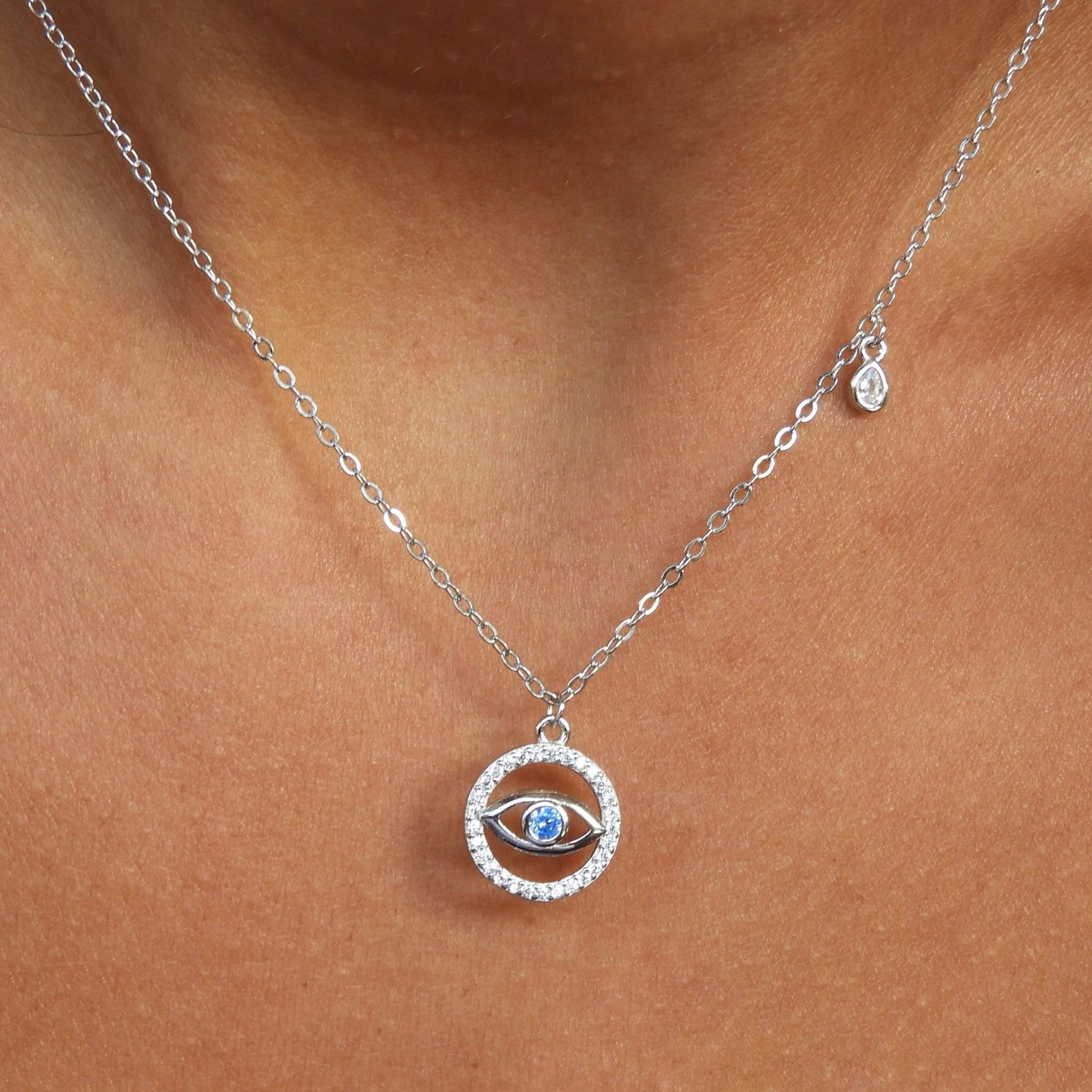 Gorgeous 925 sterling silver evil eye necklace with cubic zirconia.