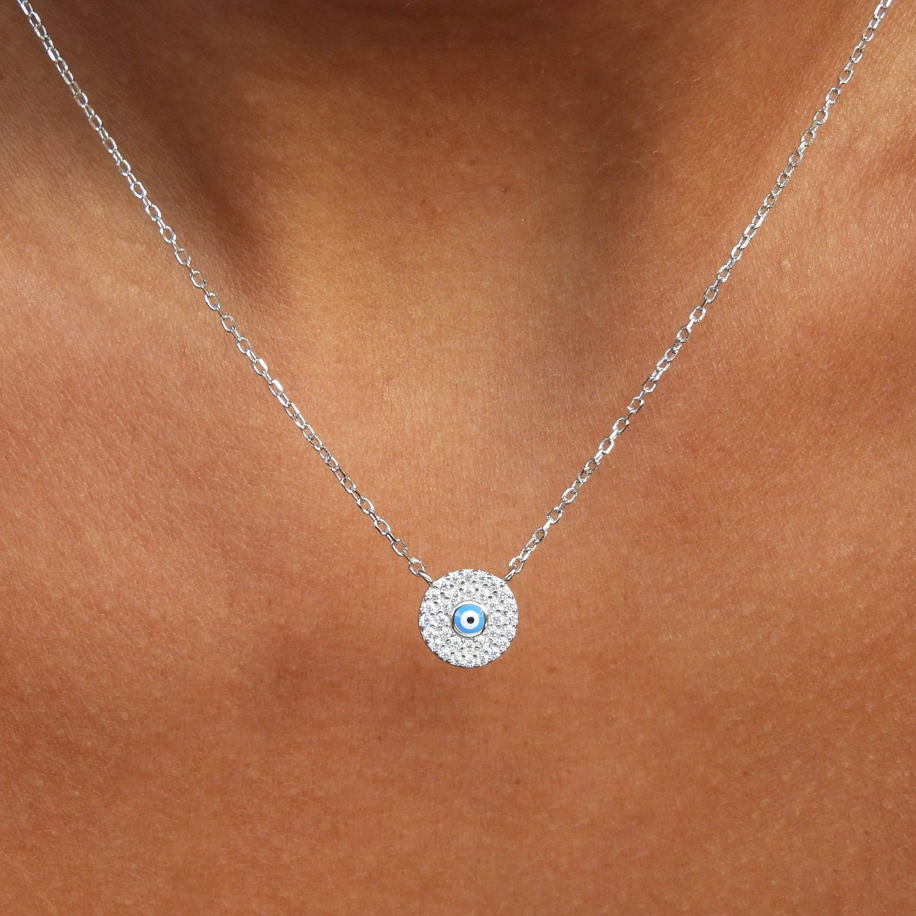 Handmade 925 Sterling Silver Evil Eye Necklace With Cubic Zirconia & Enamel.