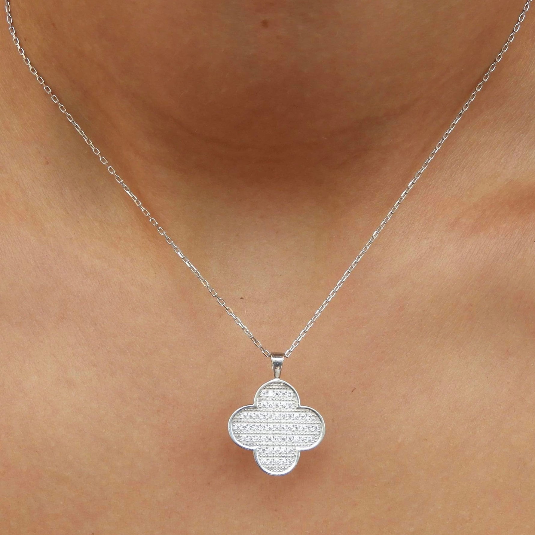 Gorgeous 925 Sterling Silver clover necklace with cubic zirconia.