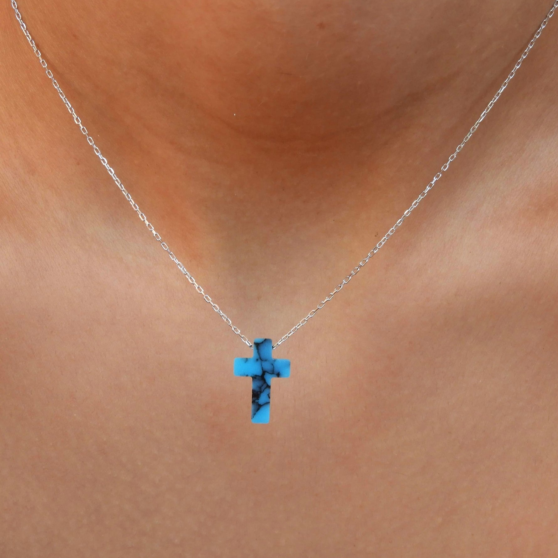 Handmade 925 Sterling Silver Blue Marble Design Cross.