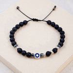 Silver Evil Eye Lava Stone Adjustable Bracelet